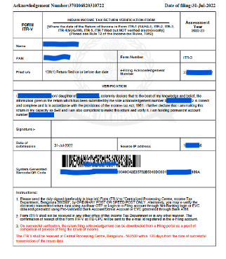 - Acknowledgement: You should submit your ITR after verifying all the details and ensuring their accuracy. Only then generate the ITR-V and sign the document for ITR-V acknowledgement.